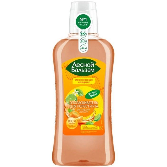 - Эффективное средство для ухода за полостью рта - ополаскиватель для рта Лесной Бальзам Фрукт Тайм со вкусом мандарина, лайма и мяты.
