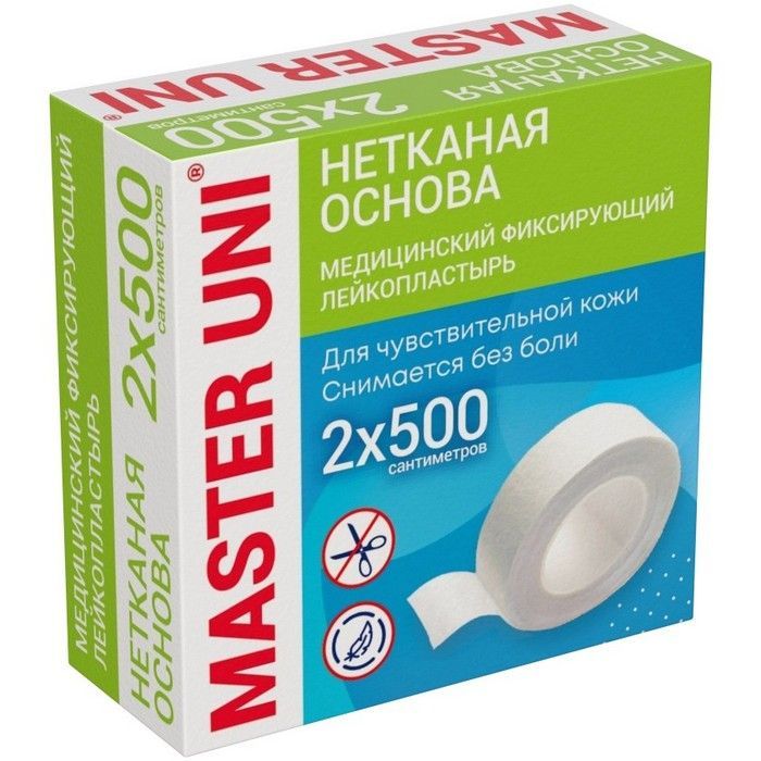 - ЛЕЙКОПЛАСТЫРЬ MASTER UNI МЕДИЦИНСКИЙ ФИКСИРУЮЩИЙ НА НЕТКАНОЙ ОСНОВЕ - современный гипоаллергенный пластырь,обладающий высокой воздухопроницаемостью.