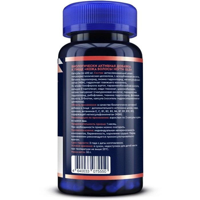GLS Кожа, волосы, ногти капс. 400мг №60 Глобал Хэлфкеар/Россия