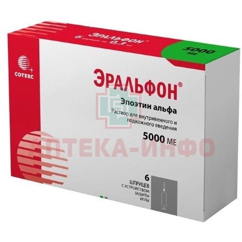 Эральфон шприц (р-р д/в/в и подк. введ.) 5000МЕ 0,3мл №6 (с уст-вом д/защиты игл) Сотекс