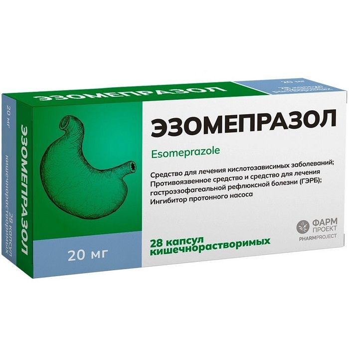 Эзомепразол капс. кишечнораств. 20мг №28 Фармпроект/Россия