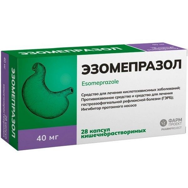 Эзомепразол капс. кишечнораств. 40мг №28 Фармпроект/Россия