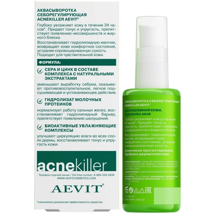 - AEVIT ACNEKILLER АКВАСЫВОРОТКА СЕБОРЕГУЛЯРУЮЩАЯ - для жирной кожи