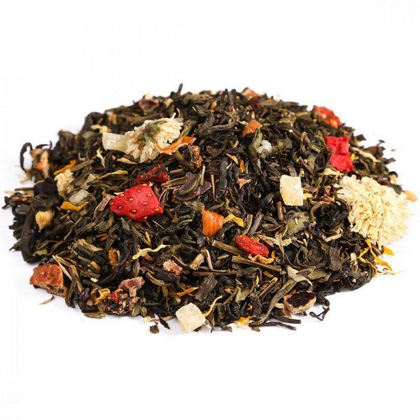 Незабываемый и яркий, сочный и в тоже время, освежающий вкус данного чая настолько необычный, что забыть его невозможно. Цукаты ананаса, кусочки клубники и плоды рожкового дерева создают невероятную, сладкую и в тоже время терпкую вкусовую палитру, которая погрузит Вас в изумительную атмосферу Японии. Ягоды годжи зарядят Вас антиоксидантами, помогут справиться с волнением, страхом, болезнями печени и почек.