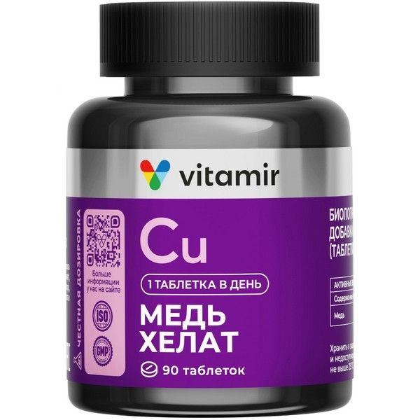 Медь Хелат Витамир таб. 100мг №90 Квадрат-С/Россия