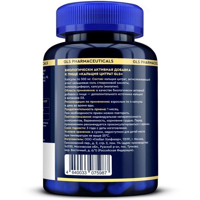 GLS Кальция цитрат капс. №180 Глобал Хэлфкеар/Россия
