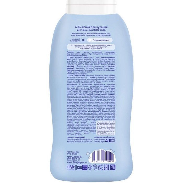 Гель-пенка НЕПОСЕДА детская д/купания 400мл БИГ/Россия