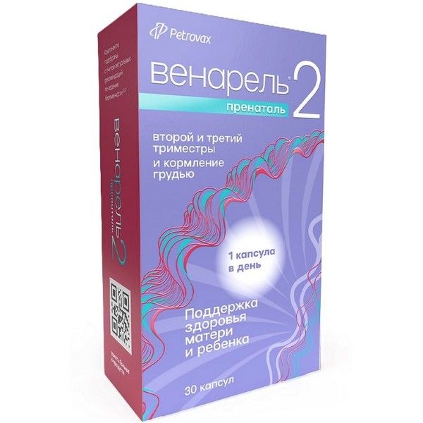 - «Венарель® Пренаталь 2»- биологически активная добавка к пище для применения на этапе второго и третьего триместра (13-40 недели) беременности и грудного вскармливания.