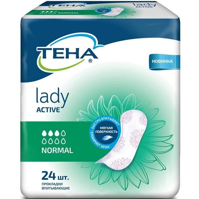 - ТЕНА Lady Active Normal (ТЕНА Леди Актив Нормал) - надежные урологические прокладки, созданные для усиленного впитывания при легкой степени недержания. Обеспечивают тройную защиту от протеканий, влаги и запаха. Благодаря гранулам суперабсорбента в составе впитывающего слоя быстро поглощают влагу, удерживая ее внутри прокладки, и нейтрализуют запах. Мягкие эластичные резиночки по бокам поддерживают форму прокладки и обеспечивают дополнительную защиту от протеканий. Ультрамягкая поверхность дарит ощущение комфорта. Не содержат ароматизаторов, отдушек и латекса. Каждая прокладка в индивидуальной упаковке и ее удобно носить с собой.
