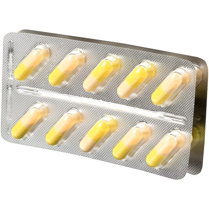 - Капсулы твердые желатиновые № 2. Корпус светло-желтого цвета с коричневатым оттенком, крышечка желтого цвета, непрозрачные. Содержимое капсул - смесь порошка и гранул белого или белого с желтоватым оттенком цвета. Допускается уплотнение содержимого капсул в комки по форме капсулы, легко разрушаемые при надавливании стеклянной палочкой.