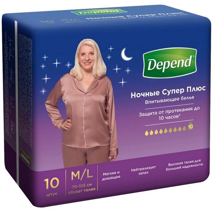 - Подгузники для взрослых ночные Depend Супер Плюс M / L для женщин.