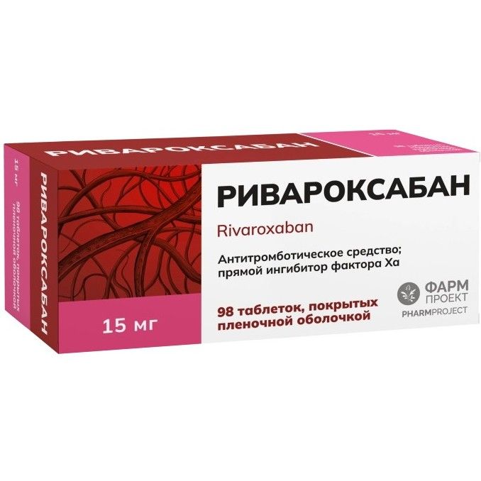 Ривароксабан таб. п/пл. об. 15мг №98 Фармпроект/Россия