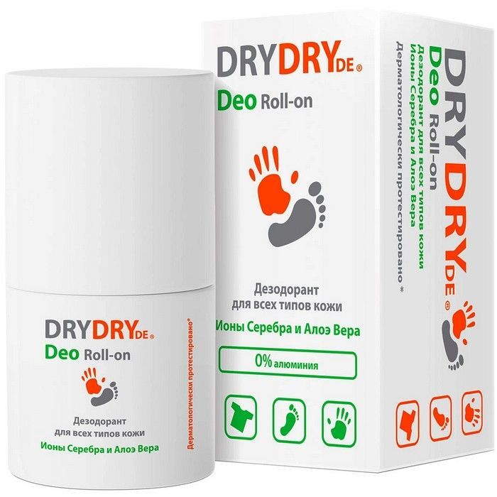 - DRYDRYDE Deo Roll-on дезодорант для всех типов кожи с ионами серебра и Алоэ Вера.