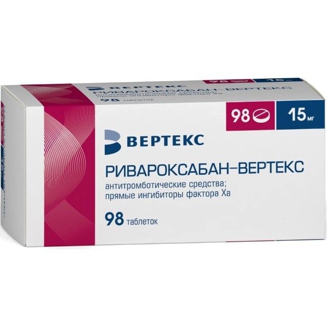 Ривароксабан-Вертекс таб. п/пл. об. 15мг №98 Вертекс/Россия