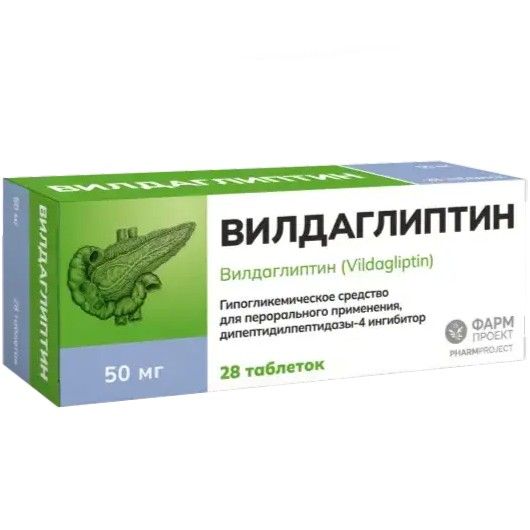 Вилдаглиптин таб. 50мг №28 Фармпроект/Россия