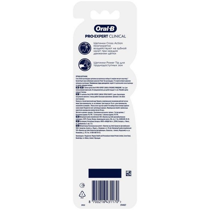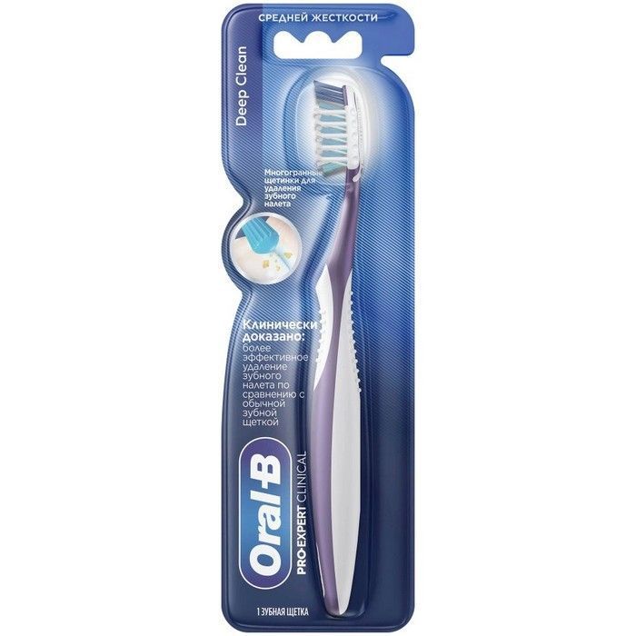 - Мануальная зубная щетка Oral-B Pro-Expert Clinical для глубокого очищения удаляет до 99% налета в труднодоступных местах. Щетка обладает многогранными щетинками Cross Action с идеальным углом наклона, которые многократно воздействуют на налет во время чистки и эффективнее справляются с налётом по сравнению с обычной зубной щеткой. Щетинки Power Tip глубоко проникают в пространства между зубами, удаляя налет в труднодоступных местах.