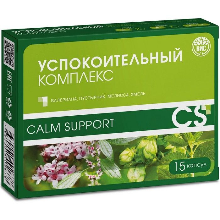 Успокоительный комплекс (валериана/пустырник/мелисса/хмель) CALM SUPPORT капс. 400мг №15 ВИС/Россия