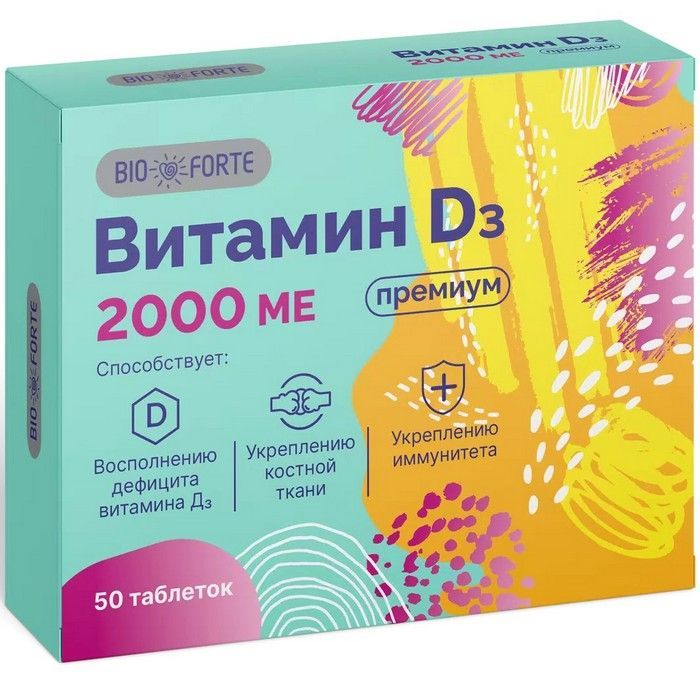 В качестве биологически активной добавки к пище – дополнительного источника витамина D3.Витамин D3 2000МЕ BioForte - 2000МЕ витамина D3 в 1 таблетке, увеличенное* содержание витамина D3 для помощи в восполнении его дефицита.