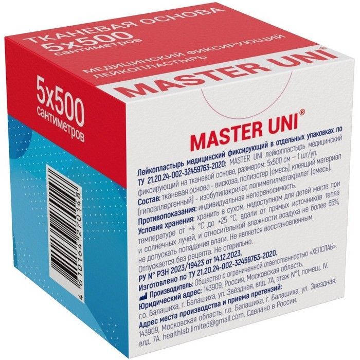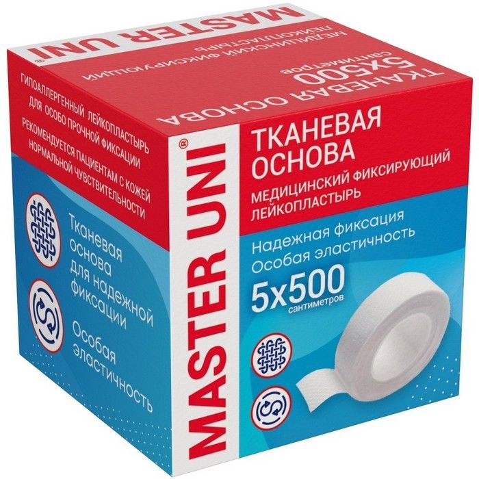 - ЛЕЙКОПЛАСТЫРЬ MASTER UNI МЕДИЦИНСКИЙ ФИКСИРУЮЩИЙ НА ТКАНЕВОЙ ОСНОВЕ - эластичный дышащий лейкопластырь для чувствительной кожи.