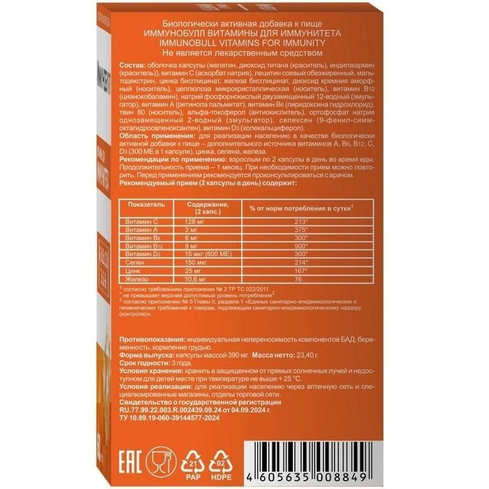 - ИММУНОБУЛЛ сочетает в себе все необходимые витамины и минералы, чтобы обеспечить вашему организму надежную защиту и поддержку.