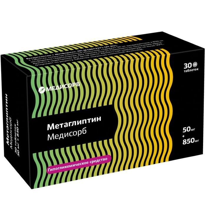 Метаглиптин Медисорб таб. п/пл. об. 50мг+850мг №30 (блистер) Медисорб/Россия