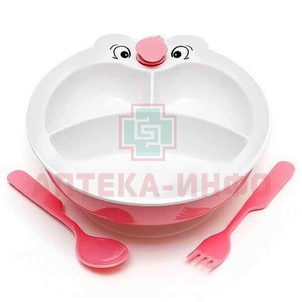 Тарелка с подогревом на присоске с ложкой и вилкой (3 секции).