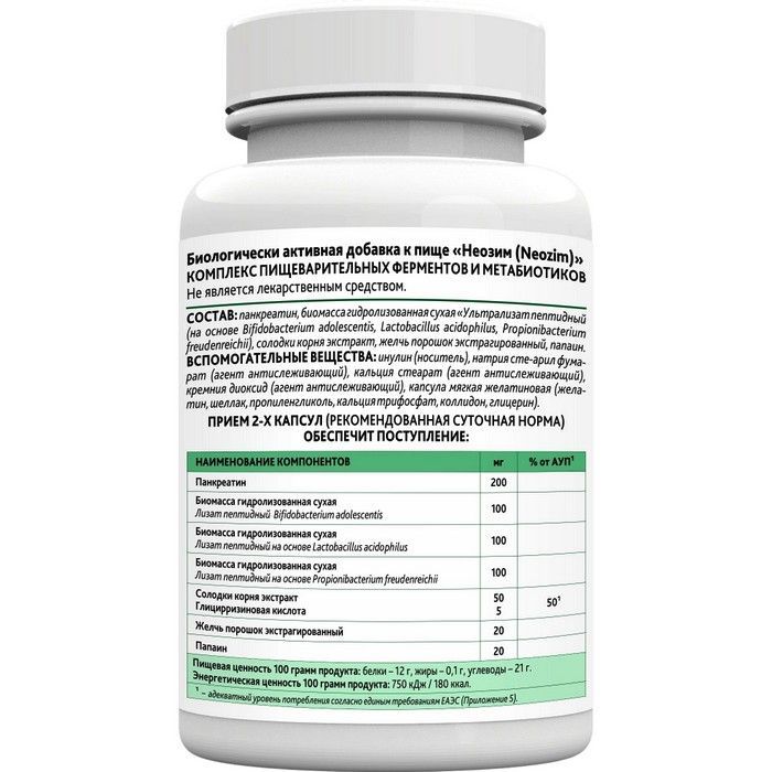 - Биологически активная добавка к пище «Неозим (Neozim)- комплекс пищеварительных ферментов и метабиотиков.