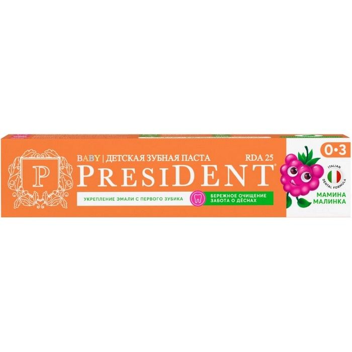 - ПРЕЗИДЕНТ ЗУБНАЯ ПАСТА ДЕТСКАЯ МАМИНА МАЛИНКА - обеспечивает заботу о деснах, укрепление эмали и бережное очищение.