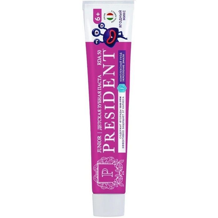 - ПРЕЗИДЕНТ ЗУБНАЯ ПАСТА ДЕТСКАЯ ЯГОДНЫЙ МИКС С ФТОРОМ - обеспечивает защиту от кариеса, заботу о деснах, укрепление эмали и эффективное очищение.