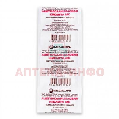 Ацетилсалициловая кислота МС таб. 500мг №10 уп.конт.яч. - пач.карт. Медисорб