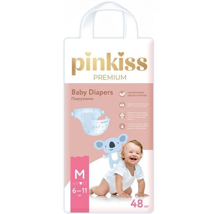 - Подгузники Pinkiss Premium M (6-11 кг)- Ультратонкие детские одноразовые подгузники с нежной бархатистой поверхностью для комфорта мальчиков и девочек.