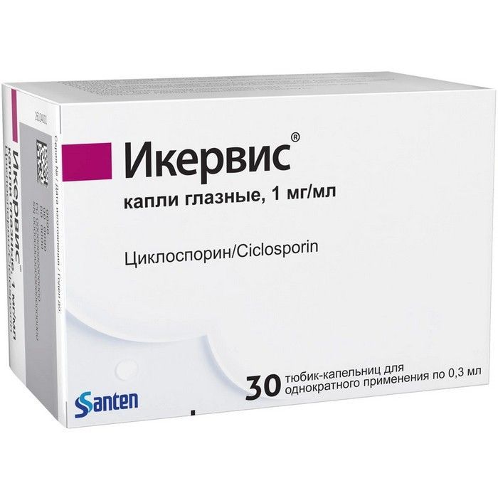 Икервис тюб.-кап.(капли глазн.) 1мг/мл 0,3мл №30 Santen OY/Финляндия