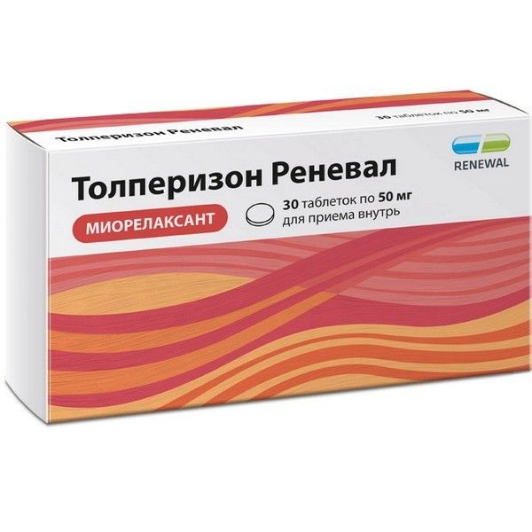 - Толперизон Реневал, 50 мг, таблетки, покрытые пленочной оболочкой