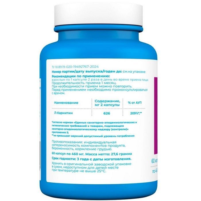 - L-карнитин - 626 мг, что соответствует 209%*, **