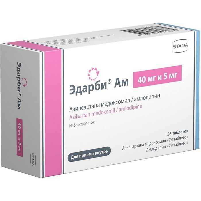- Эдарби® Ам, 40 мг и 5 мг, набор таблеток - 56 штук с листком-вкладышем в упаковке.