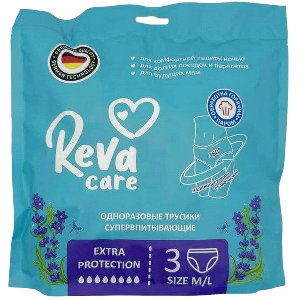 - Гигиенические впитывающие одноразовые трусы для женщин Reva Care Pants - Продукт 2в1: подходят для использования в критические дни и в послеродовой период.