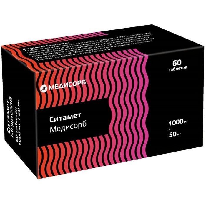 Ситамет Медисорб таб. п/пл. об. 1000мг + 50мг №60 Медисорб/Россия