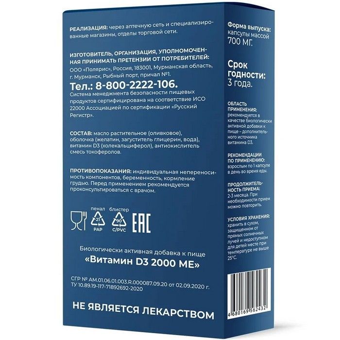 - Биологически активная добавка к пище «Витамин D3 2000 МЕ» - Для поддержки иммунитета и укрепления костей.