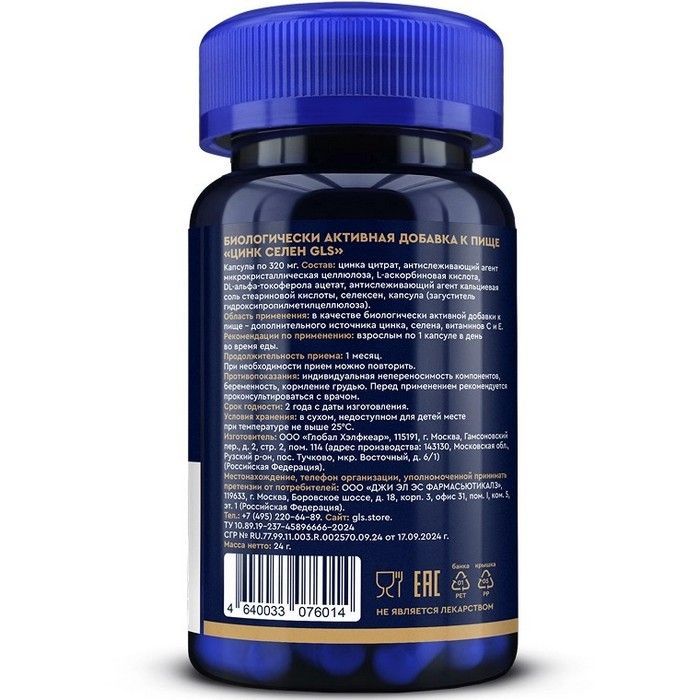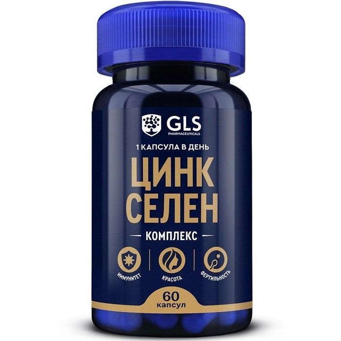 - Цинк Селен GLS капсулы в пластиковой банке с контролем первого вскрытия.