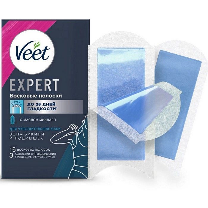 - VEET EXPERT ВОСКОВЫЕ ПОЛОСКИ ДЛЯ ЧУВСТВИТЕЛЬНОЙ КОЖИ (ЛИНИЯ БИКИНИ И ОБЛАСТЬ ПОДМЫШЕК) - разработанная экспертами уникальная форма полоски для депиляции EasyGrip* поможет вам удалить даже очень короткие (от 1,5 мм) волоски** с первого применения.