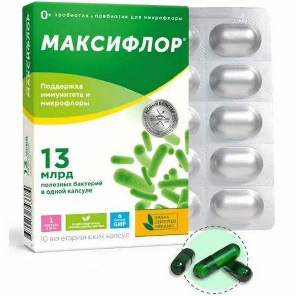 Пробиотик Максифлор – это базовый продукт в линейке, содержит 13 млрд бифидо- и лактобактерий, термофильный стрептококк + пребиотики. Сообща они решают основную задачу – поддерживают и восстанавливают баланс кишечной микрофлоры, способствуют устранению запоров и диареи, ослабляют побочные эффекты во время или после применения антибиотиков.