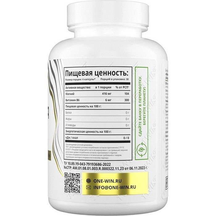 1WIN МАГНИЯ ХЕЛАТ+ВИТАМИН В6 КАПСУЛЫ