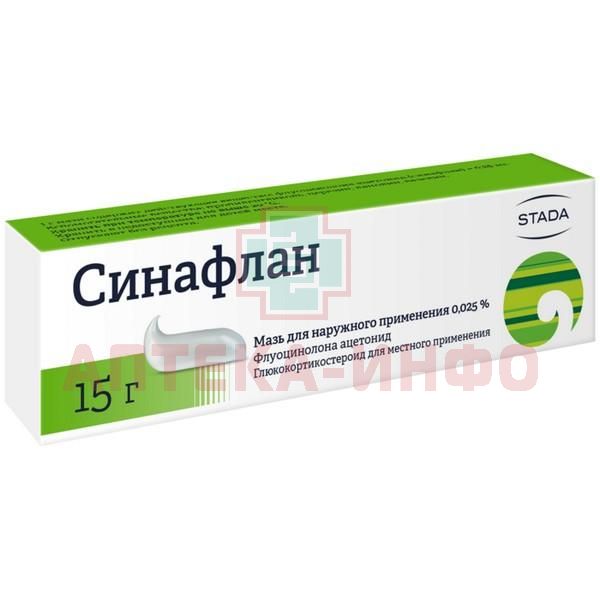 1 г линимента содержит: действующее вещество - флуоцинолона ацетонид (синафлан) - 0,25 мг, вспомогательные вещества: пропиленгликоль - 49,75 мг, ланолин - 100 мг, пентаэритритил диолеат - 50 мг, стеариновая кислота - 30 мг, метилпарагидроксибензоат - 0,8 мг, пропилпарагидроксибензоат - 0,2 мг, вода - 319 мг, вазелин - 450 мг.