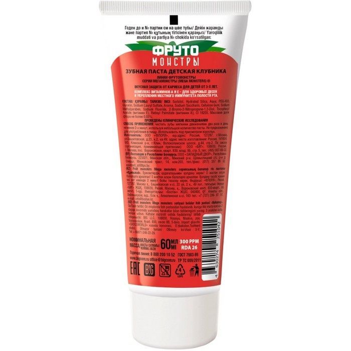 - Зубная паста детская "Клубника" серии Фрутомонстры (Mega monsters).