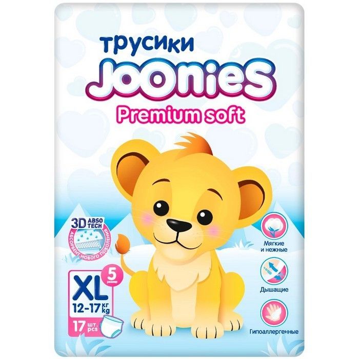 - JOONIES PREMIUM SOFT ПОДГУЗНИКИ-ТРУСИКИ ДЛЯ ДЕТЕЙ, размер ХL (12-17 кг),