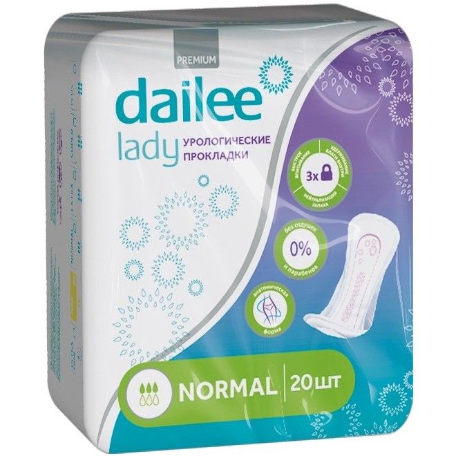 - DAILEE ПРОКЛАДКИ ЖЕНСКИЕ УРОЛОГИЧЕСКИЕ ПРИ ЛЕГКОЙ И СРЕДНЕЙ СТЕПЕНИ НЕДЕРЖАНИЯ NORMAL - предназначены для одноразового применения, для впитывания и удержания наружных выделений у женщин, страдающих недержанием.
