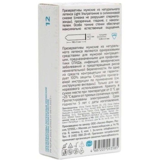 Презерватив ХАСИКО (HASICO) Ультратонкие №12 China Tianjin Recare/Китай