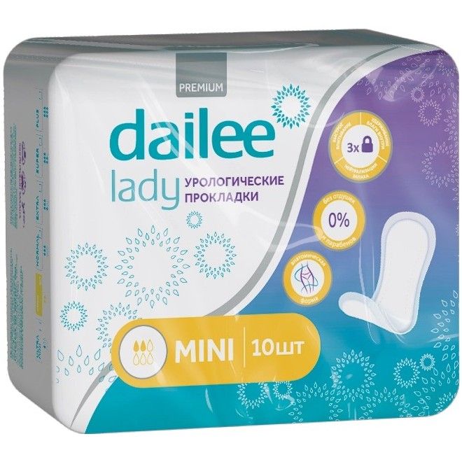 - DAILEE LADY урологические прокладки Mini - предназначены для одноразового применения, для впитывания и удержания наружных выделений у женщин, страдающих недержанием.