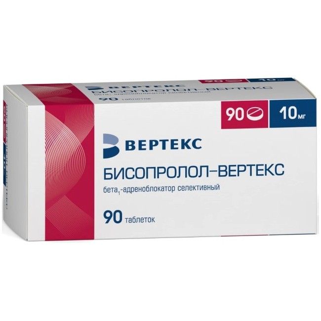 - Бисопролол – ВЕРТЕКС, 10 мг, таблетки, покрытые пленочной оболочкой