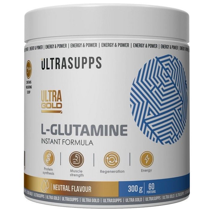 - Биологически активная добавка премиального качества Ultra Gold L-Glutamine от бренда ULTRASUPPS - 4 450 мг глютамина и 500 мг таурина в порции для достижения лучших спортивных результатов.